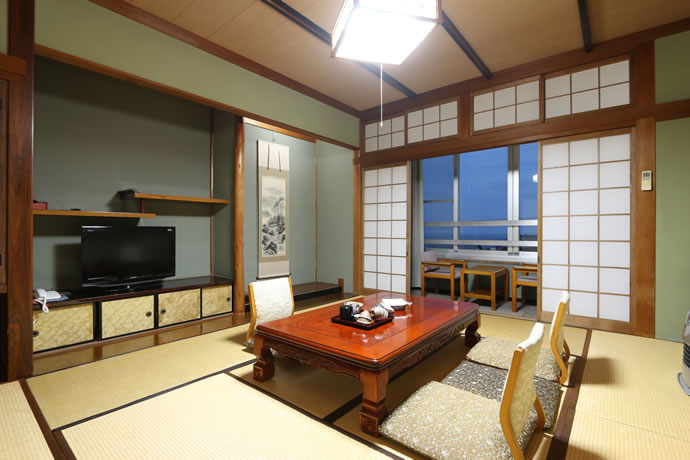 広大な日本海の景色を望む和室です。