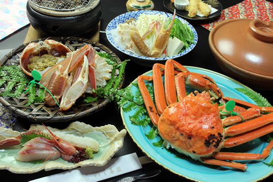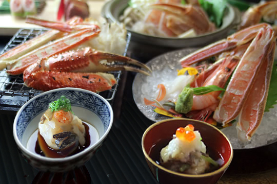 ズワイガニのほか、水揚げされたばかりの魚料理も。初めて丹後を訪れる方におすすめです。