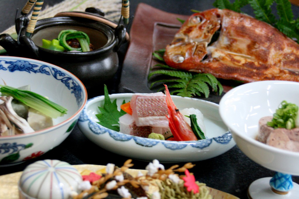 『美味しい料理を、最も美味しい瞬間に食べていただきたい』その想いから、その日の朝に獲れた地魚と旬材を見極め、板長が献立を考えます。 当館名物の季節替わりの釜飯と、素材の味が生きた至極の逸品をご堪能ください。